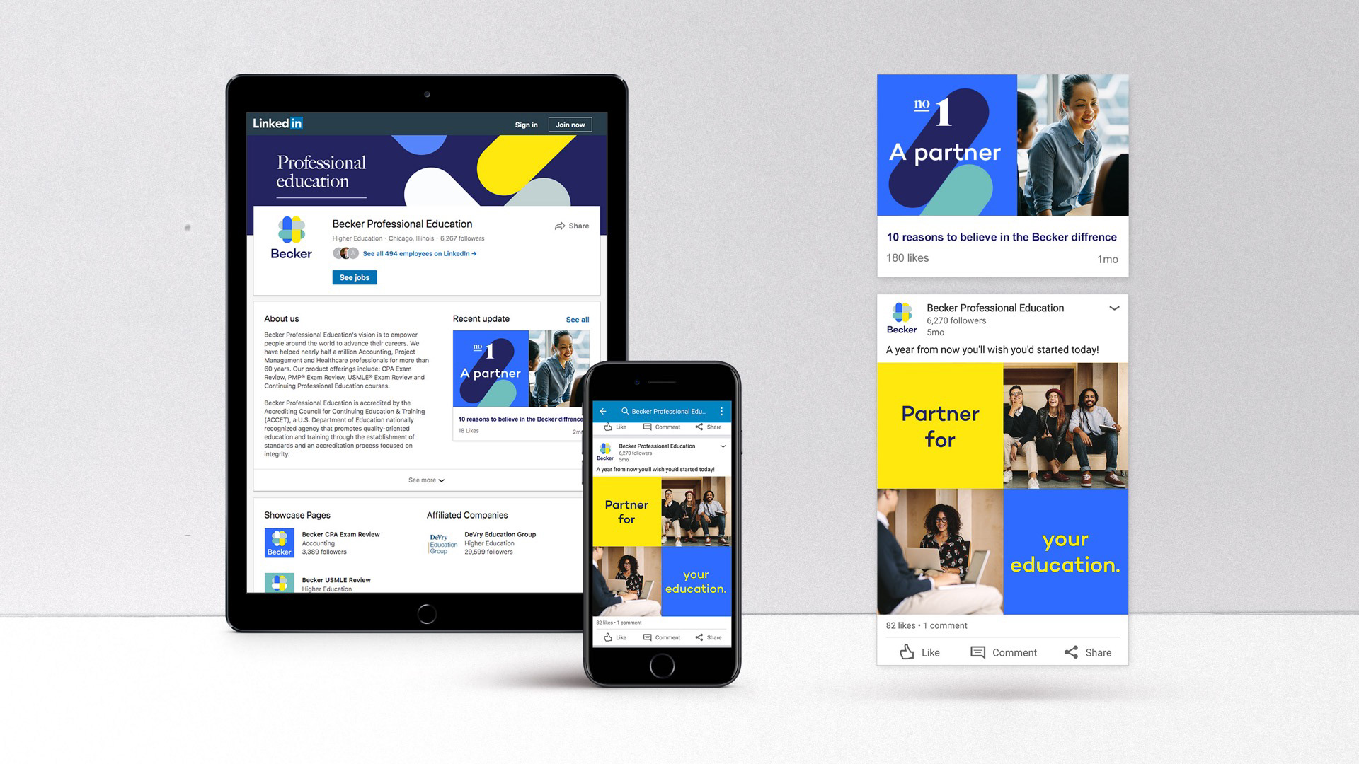 Becker is a professional continuing education platform committed to helping candidates achieve their CPA credentials and advancing their careers. Becker serves the Big 4 global accounting firms and has maintained strong relationships with top American accounting firms for more than 60 years. Becker has been a leading industry partner in CPA Exam preparation and was looking to refresh the brand to cater to a younger and more digitally savvy clientele.