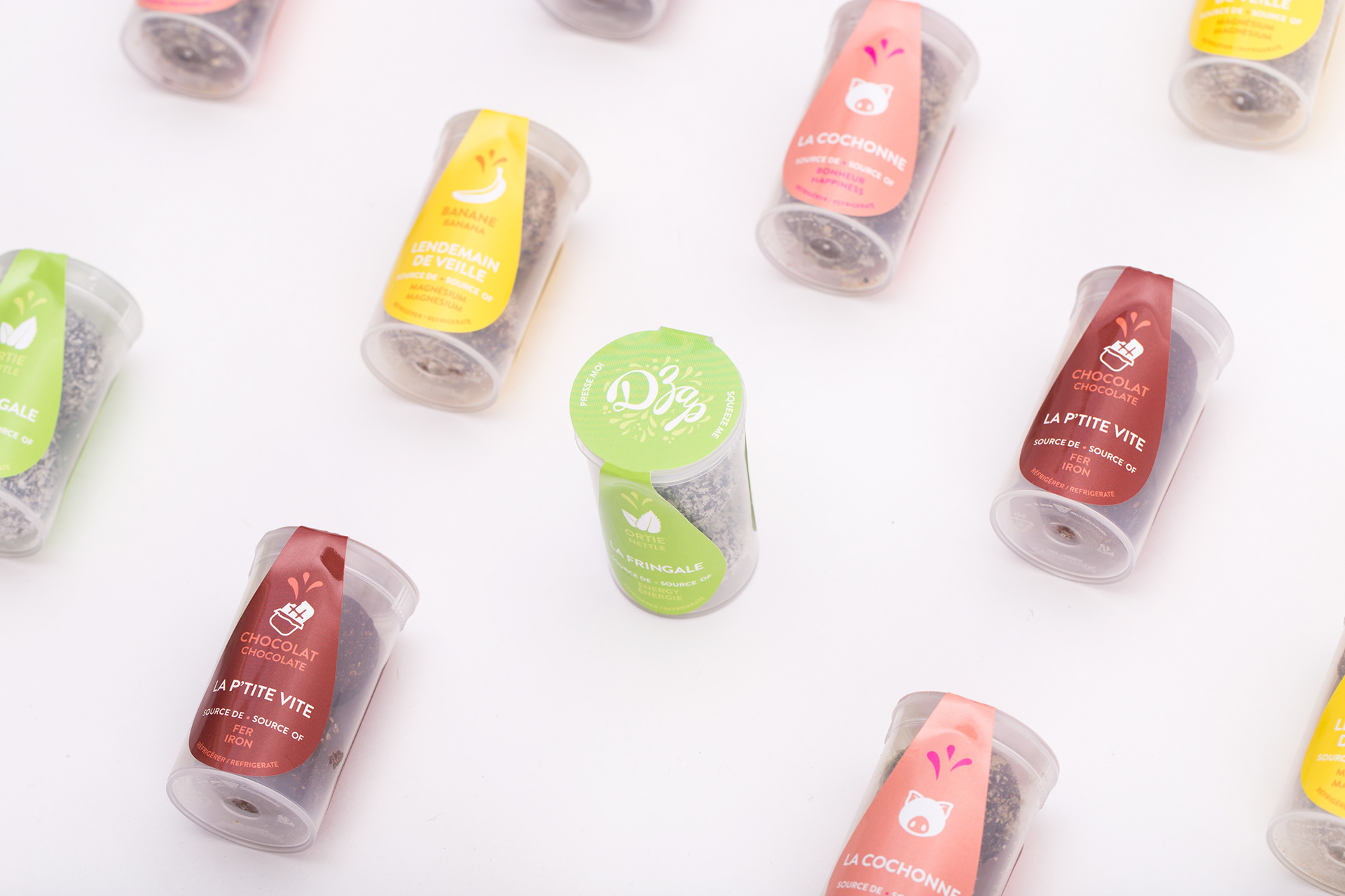 DZAP is a Montreal based company aiming to create and deliver healthy snacks to their sporty & on the go customer. The logo was hand drawn and designed in order to reflect the juiciness and the freshness of the ingredients inside each of their products. In addition, the icons and color schemes of each package was elaborated to reflect their numerous organic products (protein, gluten free, soya free, dairy free and refined sugar free snacks). Over all, the branding echoes the fun & dynamic approach of the DZAP brand allowing our client to tap into the booming healthy lifestyle market.