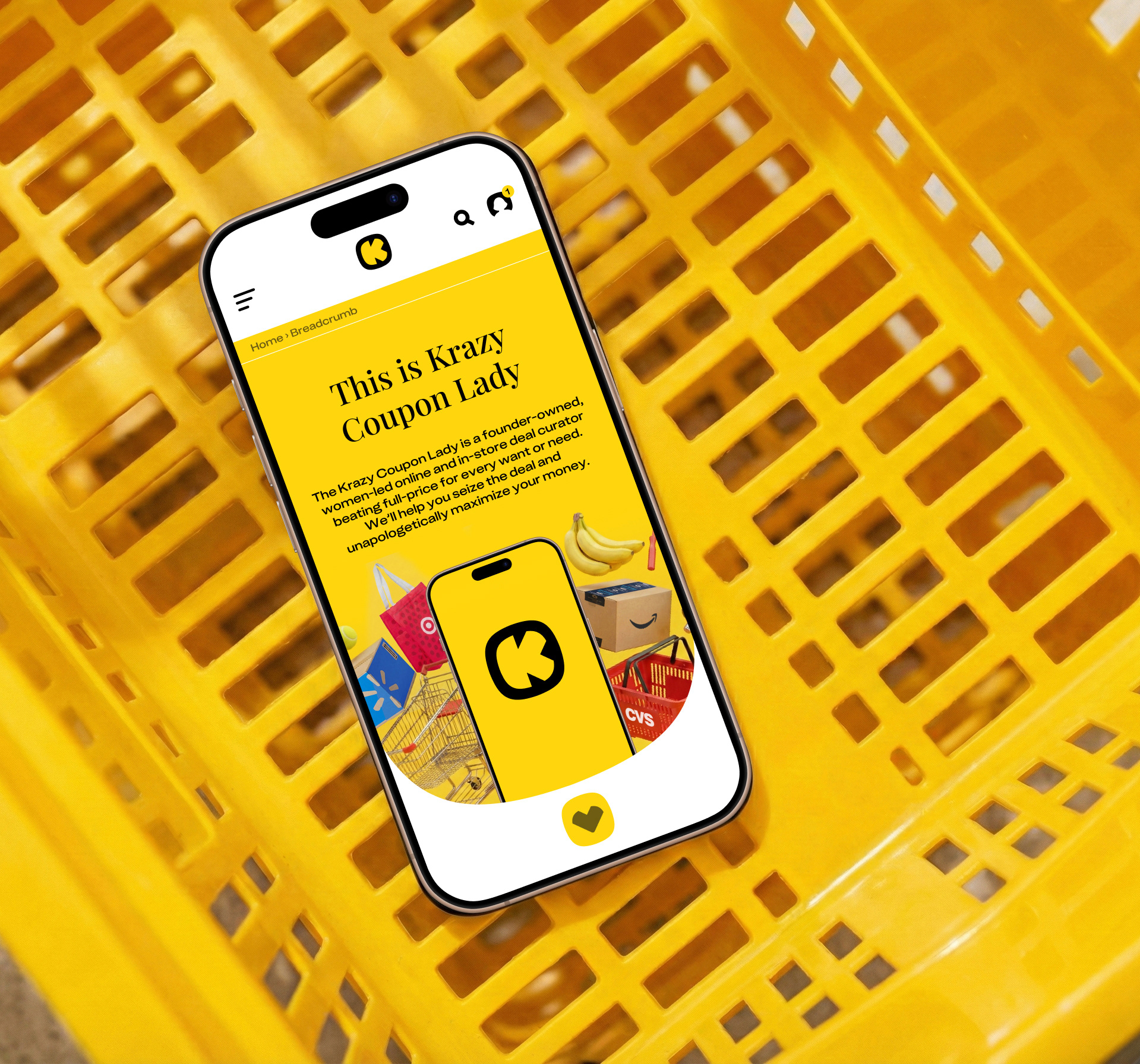 We needed to modernize the brand and transform it from yellow sticker pricing to a badass deal-hunting experience. We created a bold new brand look that revitalizes every aspect of Krazy Coupon Lady — from social media and web, app to in-store displays and merchandise— all designed to bring excitement, vibrancy and recreating the sensory feeling you get from being in a store aisle and getting the best price.